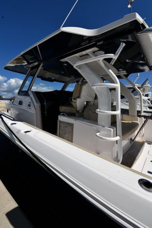 Features Triple Yamaha 425-hp Motors (Note Joy-Stick Piloting) with 700 original hours. Notable features include but are not limited to the following: Air-Conditioning & Heat (2-Units; Note Cockpit AC/Heat), Head (Vacuflush) w/Vanity/Sink/Shower, Windlass Anchor w/Polished Stainless-Steel Anchor, LewMar Bow-Thruster, Fischer Panda Generator (550-hrs.), Full Garmin NAV w/(2) Multi-Function Color / TouchScreen Display's w/Radar/GPS/Chartplotter, Autopilot, Premium Sound System w/Bluetooth, Starboard Dive Door, Cockpit Refrigerator, Cockpit Electric BBQ-Grill, Transom Live Well, and MUCH more!