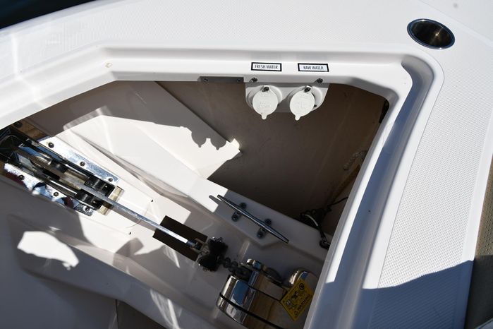 Features Triple Yamaha 425-hp Motors (Note Joy-Stick Piloting) with 700 original hours. Notable features include but are not limited to the following: Air-Conditioning & Heat (2-Units; Note Cockpit AC/Heat), Head (Vacuflush) w/Vanity/Sink/Shower, Windlass Anchor w/Polished Stainless-Steel Anchor, LewMar Bow-Thruster, Fischer Panda Generator (550-hrs.), Full Garmin NAV w/(2) Multi-Function Color / TouchScreen Display's w/Radar/GPS/Chartplotter, Autopilot, Premium Sound System w/Bluetooth, Starboard Dive Door, Cockpit Refrigerator, Cockpit Electric BBQ-Grill, Transom Live Well, and MUCH more!