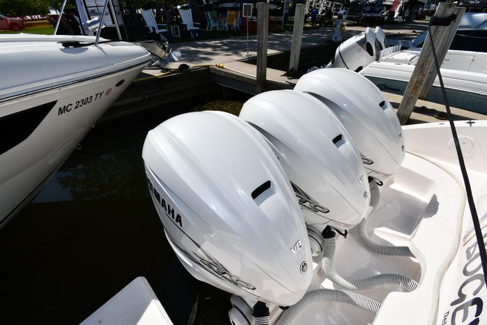 Features Triple Yamaha 425-hp Motors (Note Joy-Stick Piloting) with 700 original hours. Notable features include but are not limited to the following: Air-Conditioning & Heat (2-Units; Note Cockpit AC/Heat), Head (Vacuflush) w/Vanity/Sink/Shower, Windlass Anchor w/Polished Stainless-Steel Anchor, LewMar Bow-Thruster, Fischer Panda Generator (550-hrs.), Full Garmin NAV w/(2) Multi-Function Color / TouchScreen Display's w/Radar/GPS/Chartplotter, Autopilot, Premium Sound System w/Bluetooth, Starboard Dive Door, Cockpit Refrigerator, Cockpit Electric BBQ-Grill, Transom Live Well, and MUCH more!