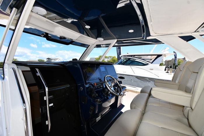Features Triple Yamaha 425-hp Motors (Note Joy-Stick Piloting) with 700 original hours. Notable features include but are not limited to the following: Air-Conditioning & Heat (2-Units; Note Cockpit AC/Heat), Head (Vacuflush) w/Vanity/Sink/Shower, Windlass Anchor w/Polished Stainless-Steel Anchor, LewMar Bow-Thruster, Fischer Panda Generator (550-hrs.), Full Garmin NAV w/(2) Multi-Function Color / TouchScreen Display's w/Radar/GPS/Chartplotter, Autopilot, Premium Sound System w/Bluetooth, Starboard Dive Door, Cockpit Refrigerator, Cockpit Electric BBQ-Grill, Transom Live Well, and MUCH more!