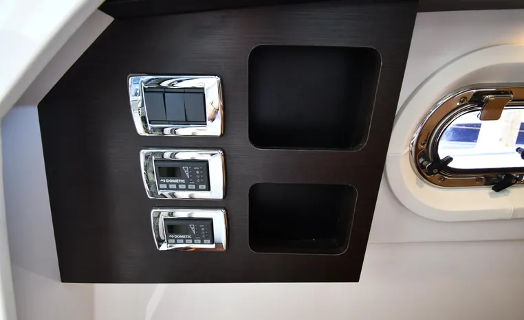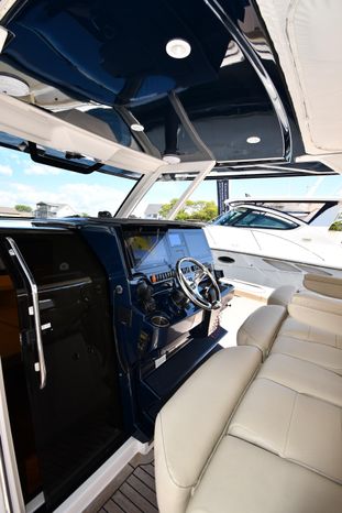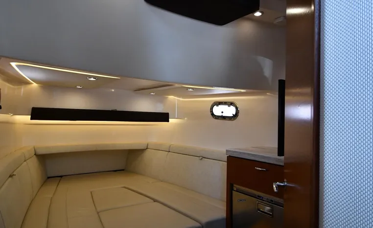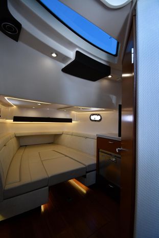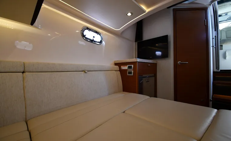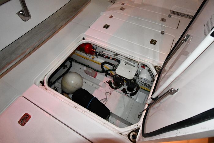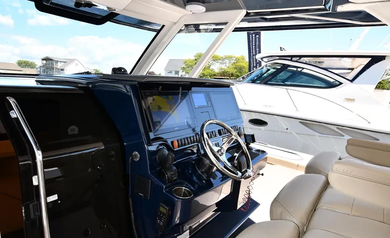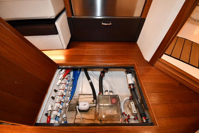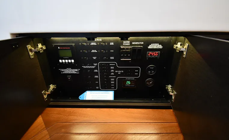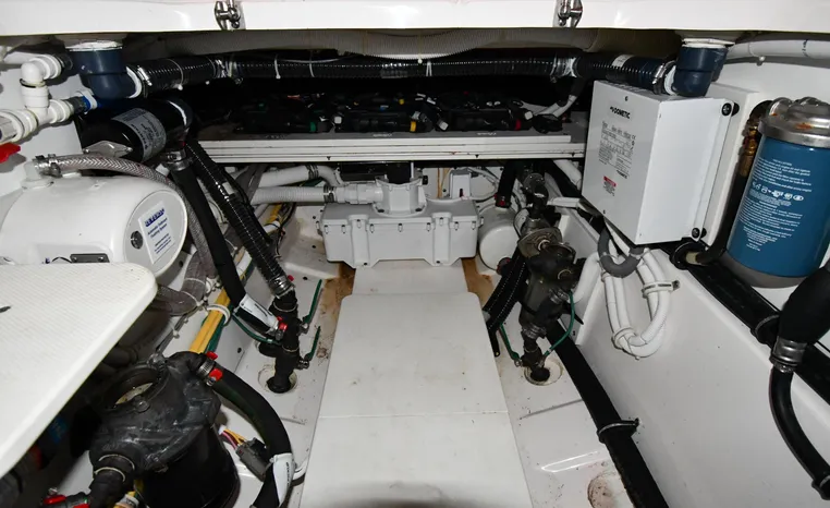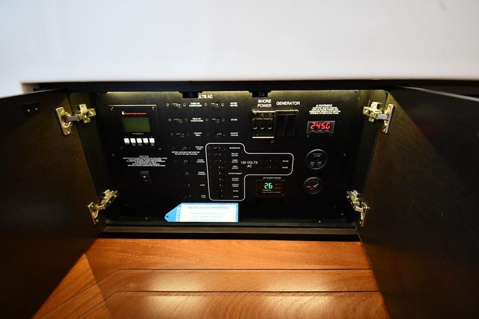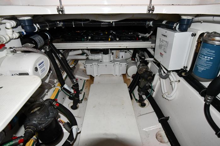 Broker Notes: Inside boathouse kept when not in use (heated winters), nicely equipped with all of the most desirable features. Striking navy blue hull sides, bottom painted w/anti-fouling paint, underwater lights, Garmin NAV. Engine's serviced 2022 fluids / filters / lower units, Generator serviced 2022 (new LCD panel), (7) NEW batteries 2022. Competitively priced, September 2021 marine survey on file.