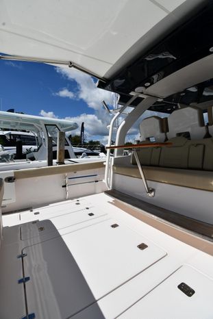 Features Triple Yamaha 425-hp Motors (Note Joy-Stick Piloting) with 700 original hours. Notable features include but are not limited to the following: Air-Conditioning & Heat (2-Units; Note Cockpit AC/Heat), Head (Vacuflush) w/Vanity/Sink/Shower, Windlass Anchor w/Polished Stainless-Steel Anchor, LewMar Bow-Thruster, Fischer Panda Generator (550-hrs.), Full Garmin NAV w/(2) Multi-Function Color / TouchScreen Display's w/Radar/GPS/Chartplotter, Autopilot, Premium Sound System w/Bluetooth, Starboard Dive Door, Cockpit Refrigerator, Cockpit Electric BBQ-Grill, Transom Live Well, and MUCH more!