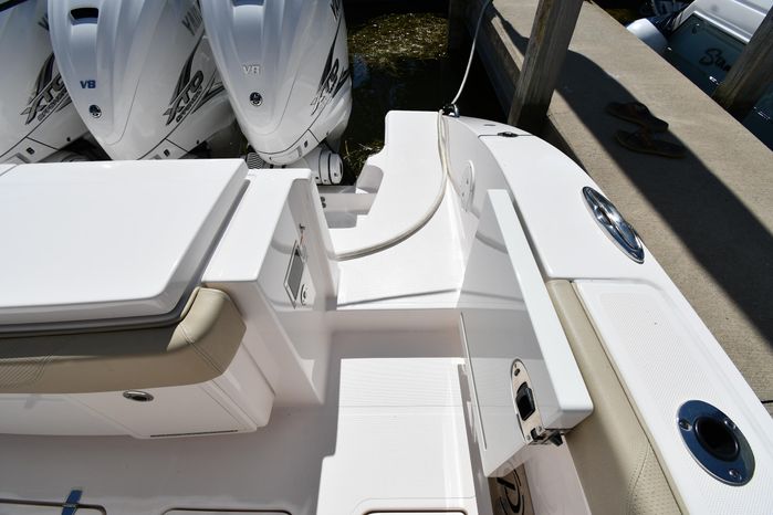 Features Triple Yamaha 425-hp Motors (Note Joy-Stick Piloting) with 700 original hours. Notable features include but are not limited to the following: Air-Conditioning & Heat (2-Units; Note Cockpit AC/Heat), Head (Vacuflush) w/Vanity/Sink/Shower, Windlass Anchor w/Polished Stainless-Steel Anchor, LewMar Bow-Thruster, Fischer Panda Generator (550-hrs.), Full Garmin NAV w/(2) Multi-Function Color / TouchScreen Display's w/Radar/GPS/Chartplotter, Autopilot, Premium Sound System w/Bluetooth, Starboard Dive Door, Cockpit Refrigerator, Cockpit Electric BBQ-Grill, Transom Live Well, and MUCH more!