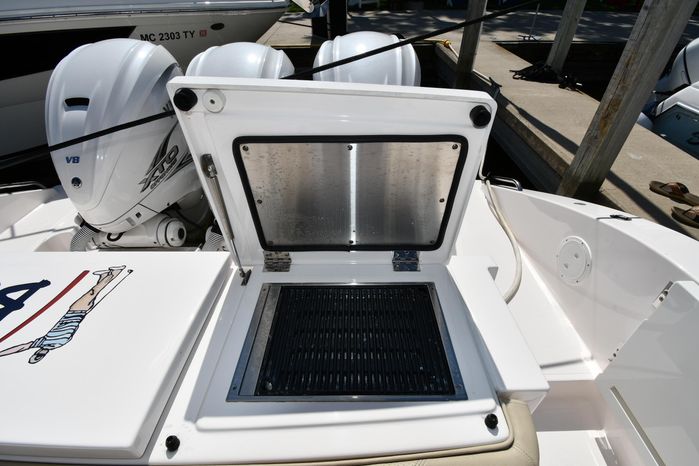 Features Triple Yamaha 425-hp Motors (Note Joy-Stick Piloting) with 700 original hours. Notable features include but are not limited to the following: Air-Conditioning & Heat (2-Units; Note Cockpit AC/Heat), Head (Vacuflush) w/Vanity/Sink/Shower, Windlass Anchor w/Polished Stainless-Steel Anchor, LewMar Bow-Thruster, Fischer Panda Generator (550-hrs.), Full Garmin NAV w/(2) Multi-Function Color / TouchScreen Display's w/Radar/GPS/Chartplotter, Autopilot, Premium Sound System w/Bluetooth, Starboard Dive Door, Cockpit Refrigerator, Cockpit Electric BBQ-Grill, Transom Live Well, and MUCH more!