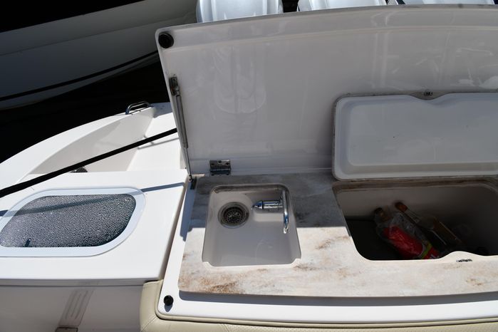 Features Triple Yamaha 425-hp Motors (Note Joy-Stick Piloting) with 700 original hours. Notable features include but are not limited to the following: Air-Conditioning & Heat (2-Units; Note Cockpit AC/Heat), Head (Vacuflush) w/Vanity/Sink/Shower, Windlass Anchor w/Polished Stainless-Steel Anchor, LewMar Bow-Thruster, Fischer Panda Generator (550-hrs.), Full Garmin NAV w/(2) Multi-Function Color / TouchScreen Display's w/Radar/GPS/Chartplotter, Autopilot, Premium Sound System w/Bluetooth, Starboard Dive Door, Cockpit Refrigerator, Cockpit Electric BBQ-Grill, Transom Live Well, and MUCH more!