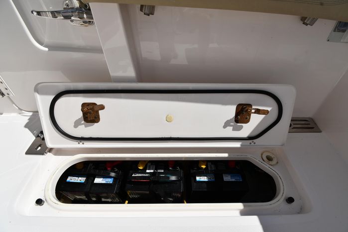 Features Triple Yamaha 425-hp Motors (Note Joy-Stick Piloting) with 700 original hours. Notable features include but are not limited to the following: Air-Conditioning & Heat (2-Units; Note Cockpit AC/Heat), Head (Vacuflush) w/Vanity/Sink/Shower, Windlass Anchor w/Polished Stainless-Steel Anchor, LewMar Bow-Thruster, Fischer Panda Generator (550-hrs.), Full Garmin NAV w/(2) Multi-Function Color / TouchScreen Display's w/Radar/GPS/Chartplotter, Autopilot, Premium Sound System w/Bluetooth, Starboard Dive Door, Cockpit Refrigerator, Cockpit Electric BBQ-Grill, Transom Live Well, and MUCH more!
