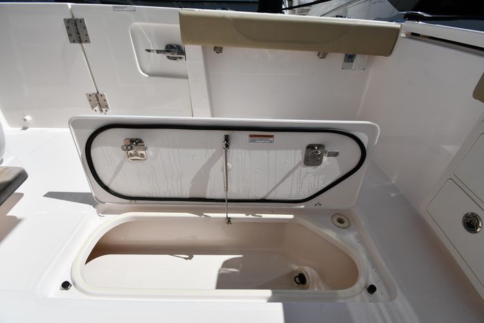Features Triple Yamaha 425-hp Motors (Note Joy-Stick Piloting) with 700 original hours. Notable features include but are not limited to the following: Air-Conditioning & Heat (2-Units; Note Cockpit AC/Heat), Head (Vacuflush) w/Vanity/Sink/Shower, Windlass Anchor w/Polished Stainless-Steel Anchor, LewMar Bow-Thruster, Fischer Panda Generator (550-hrs.), Full Garmin NAV w/(2) Multi-Function Color / TouchScreen Display's w/Radar/GPS/Chartplotter, Autopilot, Premium Sound System w/Bluetooth, Starboard Dive Door, Cockpit Refrigerator, Cockpit Electric BBQ-Grill, Transom Live Well, and MUCH more!