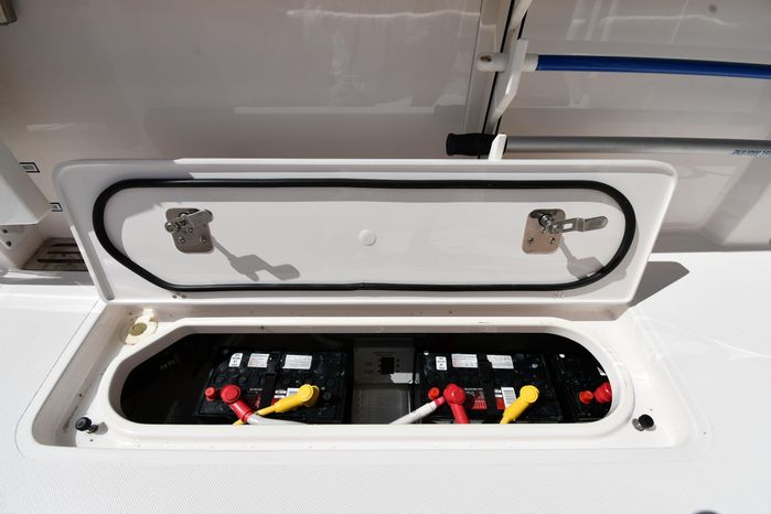 Features Triple Yamaha 425-hp Motors (Note Joy-Stick Piloting) with 700 original hours. Notable features include but are not limited to the following: Air-Conditioning & Heat (2-Units; Note Cockpit AC/Heat), Head (Vacuflush) w/Vanity/Sink/Shower, Windlass Anchor w/Polished Stainless-Steel Anchor, LewMar Bow-Thruster, Fischer Panda Generator (550-hrs.), Full Garmin NAV w/(2) Multi-Function Color / TouchScreen Display's w/Radar/GPS/Chartplotter, Autopilot, Premium Sound System w/Bluetooth, Starboard Dive Door, Cockpit Refrigerator, Cockpit Electric BBQ-Grill, Transom Live Well, and MUCH more!