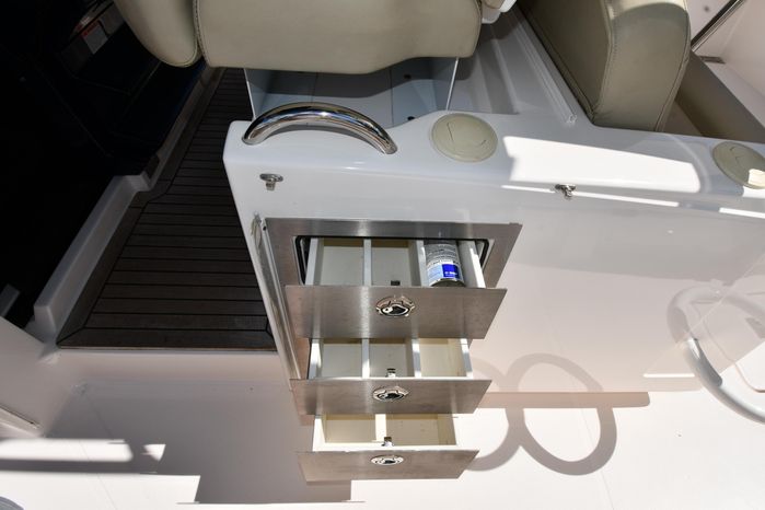Features Triple Yamaha 425-hp Motors (Note Joy-Stick Piloting) with 700 original hours. Notable features include but are not limited to the following: Air-Conditioning & Heat (2-Units; Note Cockpit AC/Heat), Head (Vacuflush) w/Vanity/Sink/Shower, Windlass Anchor w/Polished Stainless-Steel Anchor, LewMar Bow-Thruster, Fischer Panda Generator (550-hrs.), Full Garmin NAV w/(2) Multi-Function Color / TouchScreen Display's w/Radar/GPS/Chartplotter, Autopilot, Premium Sound System w/Bluetooth, Starboard Dive Door, Cockpit Refrigerator, Cockpit Electric BBQ-Grill, Transom Live Well, and MUCH more!