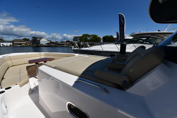 Features Triple Yamaha 425-hp Motors (Note Joy-Stick Piloting) with 700 original hours. Notable features include but are not limited to the following: Air-Conditioning & Heat (2-Units; Note Cockpit AC/Heat), Head (Vacuflush) w/Vanity/Sink/Shower, Windlass Anchor w/Polished Stainless-Steel Anchor, LewMar Bow-Thruster, Fischer Panda Generator (550-hrs.), Full Garmin NAV w/(2) Multi-Function Color / TouchScreen Display's w/Radar/GPS/Chartplotter, Autopilot, Premium Sound System w/Bluetooth, Starboard Dive Door, Cockpit Refrigerator, Cockpit Electric BBQ-Grill, Transom Live Well, and MUCH more!