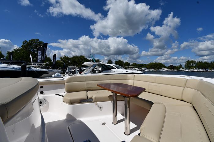 Features Triple Yamaha 425-hp Motors (Note Joy-Stick Piloting) with 700 original hours. Notable features include but are not limited to the following: Air-Conditioning & Heat (2-Units; Note Cockpit AC/Heat), Head (Vacuflush) w/Vanity/Sink/Shower, Windlass Anchor w/Polished Stainless-Steel Anchor, LewMar Bow-Thruster, Fischer Panda Generator (550-hrs.), Full Garmin NAV w/(2) Multi-Function Color / TouchScreen Display's w/Radar/GPS/Chartplotter, Autopilot, Premium Sound System w/Bluetooth, Starboard Dive Door, Cockpit Refrigerator, Cockpit Electric BBQ-Grill, Transom Live Well, and MUCH more!