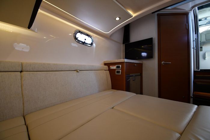 Features Triple Yamaha 425-hp Motors (Note Joy-Stick Piloting) with 700 original hours. Notable features include but are not limited to the following: Air-Conditioning & Heat (2-Units; Note Cockpit AC/Heat), Head (Vacuflush) w/Vanity/Sink/Shower, Windlass Anchor w/Polished Stainless-Steel Anchor, LewMar Bow-Thruster, Fischer Panda Generator (550-hrs.), Full Garmin NAV w/(2) Multi-Function Color / TouchScreen Display's w/Radar/GPS/Chartplotter, Autopilot, Premium Sound System w/Bluetooth, Starboard Dive Door, Cockpit Refrigerator, Cockpit Electric BBQ-Grill, Transom Live Well, and MUCH more!