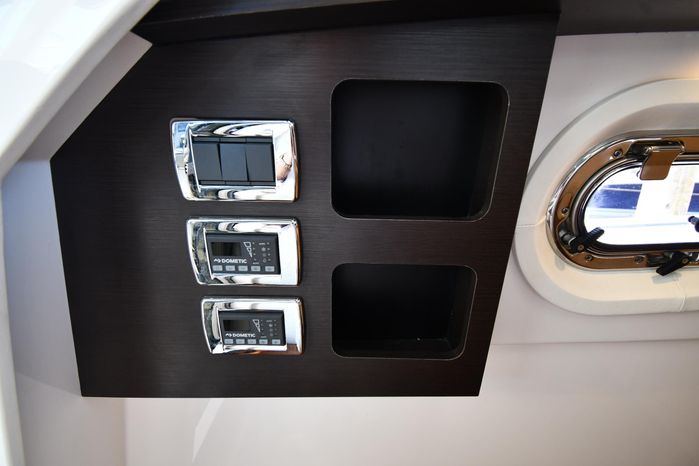 Features Triple Yamaha 425-hp Motors (Note Joy-Stick Piloting) with 700 original hours. Notable features include but are not limited to the following: Air-Conditioning & Heat (2-Units; Note Cockpit AC/Heat), Head (Vacuflush) w/Vanity/Sink/Shower, Windlass Anchor w/Polished Stainless-Steel Anchor, LewMar Bow-Thruster, Fischer Panda Generator (550-hrs.), Full Garmin NAV w/(2) Multi-Function Color / TouchScreen Display's w/Radar/GPS/Chartplotter, Autopilot, Premium Sound System w/Bluetooth, Starboard Dive Door, Cockpit Refrigerator, Cockpit Electric BBQ-Grill, Transom Live Well, and MUCH more!