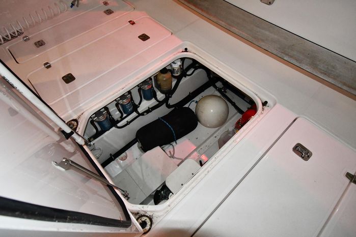 Features Triple Yamaha 425-hp Motors (Note Joy-Stick Piloting) with 700 original hours. Notable features include but are not limited to the following: Air-Conditioning & Heat (2-Units; Note Cockpit AC/Heat), Head (Vacuflush) w/Vanity/Sink/Shower, Windlass Anchor w/Polished Stainless-Steel Anchor, LewMar Bow-Thruster, Fischer Panda Generator (550-hrs.), Full Garmin NAV w/(2) Multi-Function Color / TouchScreen Display's w/Radar/GPS/Chartplotter, Autopilot, Premium Sound System w/Bluetooth, Starboard Dive Door, Cockpit Refrigerator, Cockpit Electric BBQ-Grill, Transom Live Well, and MUCH more!