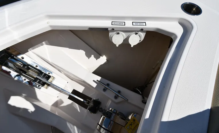 Features Triple Yamaha 425-hp Motors (Note Joy-Stick Piloting) with 700 original hours. Notable features include but are not limited to the following: Air-Conditioning & Heat (2-Units; Note Cockpit AC/Heat), Head (Vacuflush) w/Vanity/Sink/Shower, Windlass Anchor w/Polished Stainless-Steel Anchor, LewMar Bow-Thruster, Fischer Panda Generator (550-hrs.), Full Garmin NAV w/(2) Multi-Function Color / TouchScreen Display's w/Radar/GPS/Chartplotter, Autopilot, Premium Sound System w/Bluetooth, Starboard Dive Door, Cockpit Refrigerator, Cockpit Electric BBQ-Grill, Transom Live Well, and MUCH more!