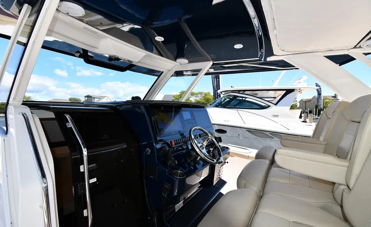 Features Triple Yamaha 425-hp Motors (Note Joy-Stick Piloting) with 700 original hours. Notable features include but are not limited to the following: Air-Conditioning & Heat (2-Units; Note Cockpit AC/Heat), Head (Vacuflush) w/Vanity/Sink/Shower, Windlass Anchor w/Polished Stainless-Steel Anchor, LewMar Bow-Thruster, Fischer Panda Generator (550-hrs.), Full Garmin NAV w/(2) Multi-Function Color / TouchScreen Display's w/Radar/GPS/Chartplotter, Autopilot, Premium Sound System w/Bluetooth, Starboard Dive Door, Cockpit Refrigerator, Cockpit Electric BBQ-Grill, Transom Live Well, and MUCH more!