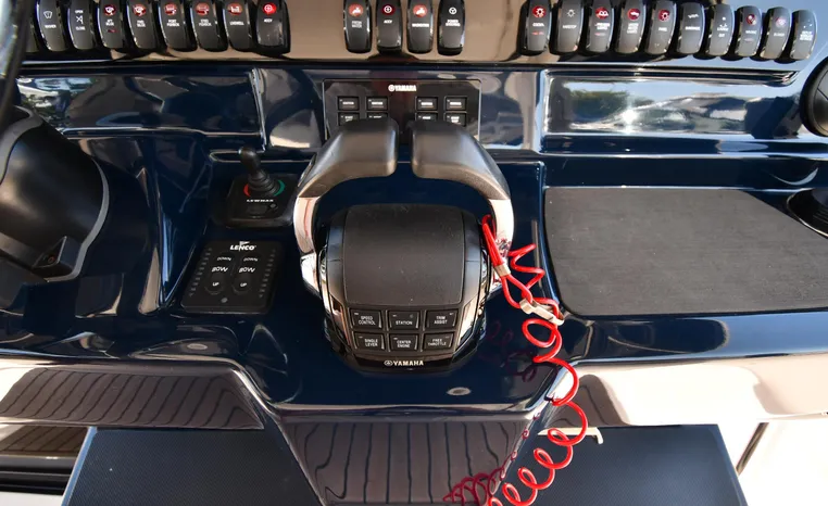 Features Triple Yamaha 425-hp Motors (Note Joy-Stick Piloting) with 700 original hours. Notable features include but are not limited to the following: Air-Conditioning & Heat (2-Units; Note Cockpit AC/Heat), Head (Vacuflush) w/Vanity/Sink/Shower, Windlass Anchor w/Polished Stainless-Steel Anchor, LewMar Bow-Thruster, Fischer Panda Generator (550-hrs.), Full Garmin NAV w/(2) Multi-Function Color / TouchScreen Display's w/Radar/GPS/Chartplotter, Autopilot, Premium Sound System w/Bluetooth, Starboard Dive Door, Cockpit Refrigerator, Cockpit Electric BBQ-Grill, Transom Live Well, and MUCH more!