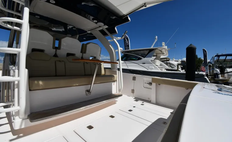Features Triple Yamaha 425-hp Motors (Note Joy-Stick Piloting) with 700 original hours. Notable features include but are not limited to the following: Air-Conditioning & Heat (2-Units; Note Cockpit AC/Heat), Head (Vacuflush) w/Vanity/Sink/Shower, Windlass Anchor w/Polished Stainless-Steel Anchor, LewMar Bow-Thruster, Fischer Panda Generator (550-hrs.), Full Garmin NAV w/(2) Multi-Function Color / TouchScreen Display's w/Radar/GPS/Chartplotter, Autopilot, Premium Sound System w/Bluetooth, Starboard Dive Door, Cockpit Refrigerator, Cockpit Electric BBQ-Grill, Transom Live Well, and MUCH more!