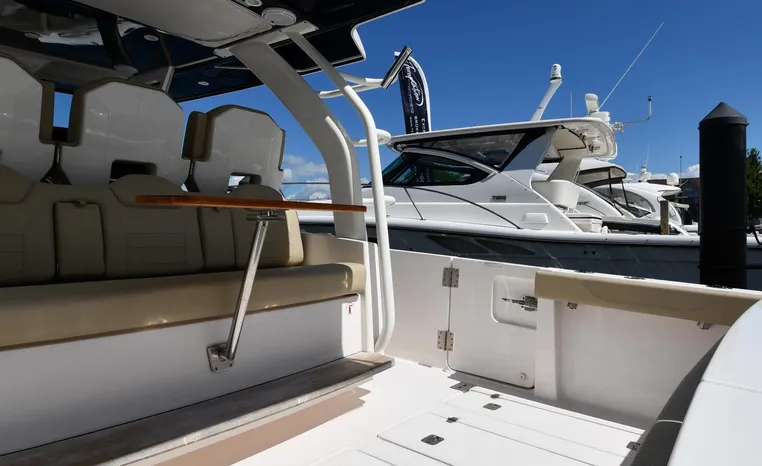 Features Triple Yamaha 425-hp Motors (Note Joy-Stick Piloting) with 700 original hours. Notable features include but are not limited to the following: Air-Conditioning & Heat (2-Units; Note Cockpit AC/Heat), Head (Vacuflush) w/Vanity/Sink/Shower, Windlass Anchor w/Polished Stainless-Steel Anchor, LewMar Bow-Thruster, Fischer Panda Generator (550-hrs.), Full Garmin NAV w/(2) Multi-Function Color / TouchScreen Display's w/Radar/GPS/Chartplotter, Autopilot, Premium Sound System w/Bluetooth, Starboard Dive Door, Cockpit Refrigerator, Cockpit Electric BBQ-Grill, Transom Live Well, and MUCH more!