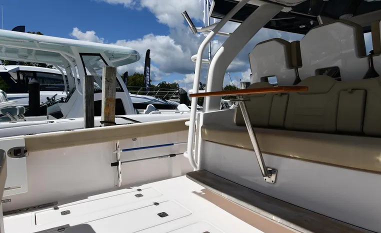 Features Triple Yamaha 425-hp Motors (Note Joy-Stick Piloting) with 700 original hours. Notable features include but are not limited to the following: Air-Conditioning & Heat (2-Units; Note Cockpit AC/Heat), Head (Vacuflush) w/Vanity/Sink/Shower, Windlass Anchor w/Polished Stainless-Steel Anchor, LewMar Bow-Thruster, Fischer Panda Generator (550-hrs.), Full Garmin NAV w/(2) Multi-Function Color / TouchScreen Display's w/Radar/GPS/Chartplotter, Autopilot, Premium Sound System w/Bluetooth, Starboard Dive Door, Cockpit Refrigerator, Cockpit Electric BBQ-Grill, Transom Live Well, and MUCH more!