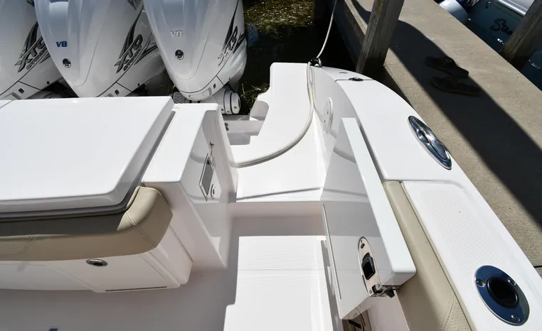 Features Triple Yamaha 425-hp Motors (Note Joy-Stick Piloting) with 700 original hours. Notable features include but are not limited to the following: Air-Conditioning & Heat (2-Units; Note Cockpit AC/Heat), Head (Vacuflush) w/Vanity/Sink/Shower, Windlass Anchor w/Polished Stainless-Steel Anchor, LewMar Bow-Thruster, Fischer Panda Generator (550-hrs.), Full Garmin NAV w/(2) Multi-Function Color / TouchScreen Display's w/Radar/GPS/Chartplotter, Autopilot, Premium Sound System w/Bluetooth, Starboard Dive Door, Cockpit Refrigerator, Cockpit Electric BBQ-Grill, Transom Live Well, and MUCH more!
