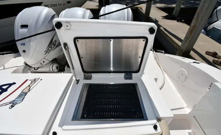 Features Triple Yamaha 425-hp Motors (Note Joy-Stick Piloting) with 700 original hours. Notable features include but are not limited to the following: Air-Conditioning & Heat (2-Units; Note Cockpit AC/Heat), Head (Vacuflush) w/Vanity/Sink/Shower, Windlass Anchor w/Polished Stainless-Steel Anchor, LewMar Bow-Thruster, Fischer Panda Generator (550-hrs.), Full Garmin NAV w/(2) Multi-Function Color / TouchScreen Display's w/Radar/GPS/Chartplotter, Autopilot, Premium Sound System w/Bluetooth, Starboard Dive Door, Cockpit Refrigerator, Cockpit Electric BBQ-Grill, Transom Live Well, and MUCH more!