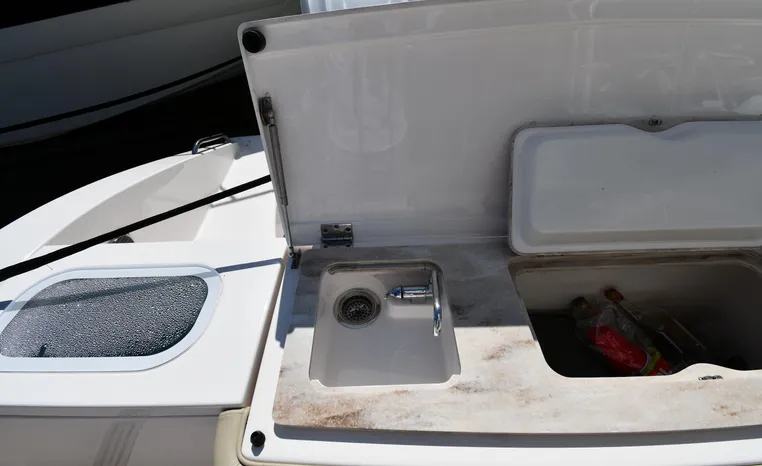 Features Triple Yamaha 425-hp Motors (Note Joy-Stick Piloting) with 700 original hours. Notable features include but are not limited to the following: Air-Conditioning & Heat (2-Units; Note Cockpit AC/Heat), Head (Vacuflush) w/Vanity/Sink/Shower, Windlass Anchor w/Polished Stainless-Steel Anchor, LewMar Bow-Thruster, Fischer Panda Generator (550-hrs.), Full Garmin NAV w/(2) Multi-Function Color / TouchScreen Display's w/Radar/GPS/Chartplotter, Autopilot, Premium Sound System w/Bluetooth, Starboard Dive Door, Cockpit Refrigerator, Cockpit Electric BBQ-Grill, Transom Live Well, and MUCH more!