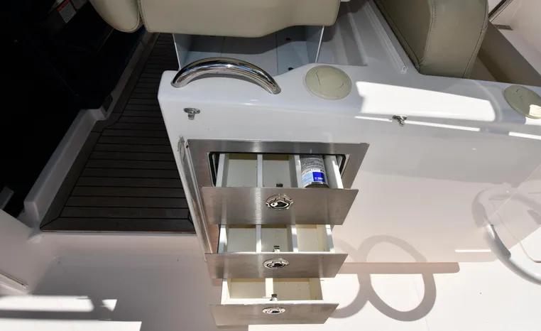 Features Triple Yamaha 425-hp Motors (Note Joy-Stick Piloting) with 700 original hours. Notable features include but are not limited to the following: Air-Conditioning & Heat (2-Units; Note Cockpit AC/Heat), Head (Vacuflush) w/Vanity/Sink/Shower, Windlass Anchor w/Polished Stainless-Steel Anchor, LewMar Bow-Thruster, Fischer Panda Generator (550-hrs.), Full Garmin NAV w/(2) Multi-Function Color / TouchScreen Display's w/Radar/GPS/Chartplotter, Autopilot, Premium Sound System w/Bluetooth, Starboard Dive Door, Cockpit Refrigerator, Cockpit Electric BBQ-Grill, Transom Live Well, and MUCH more!