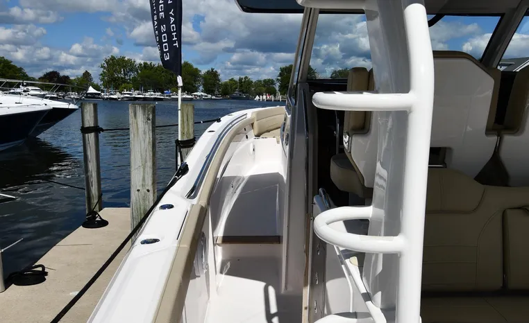 Features Triple Yamaha 425-hp Motors (Note Joy-Stick Piloting) with 700 original hours. Notable features include but are not limited to the following: Air-Conditioning & Heat (2-Units; Note Cockpit AC/Heat), Head (Vacuflush) w/Vanity/Sink/Shower, Windlass Anchor w/Polished Stainless-Steel Anchor, LewMar Bow-Thruster, Fischer Panda Generator (550-hrs.), Full Garmin NAV w/(2) Multi-Function Color / TouchScreen Display's w/Radar/GPS/Chartplotter, Autopilot, Premium Sound System w/Bluetooth, Starboard Dive Door, Cockpit Refrigerator, Cockpit Electric BBQ-Grill, Transom Live Well, and MUCH more!