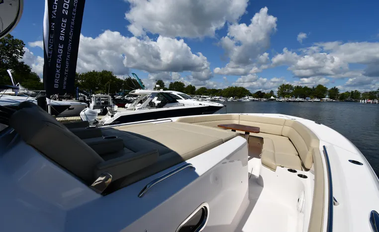 Features Triple Yamaha 425-hp Motors (Note Joy-Stick Piloting) with 700 original hours. Notable features include but are not limited to the following: Air-Conditioning & Heat (2-Units; Note Cockpit AC/Heat), Head (Vacuflush) w/Vanity/Sink/Shower, Windlass Anchor w/Polished Stainless-Steel Anchor, LewMar Bow-Thruster, Fischer Panda Generator (550-hrs.), Full Garmin NAV w/(2) Multi-Function Color / TouchScreen Display's w/Radar/GPS/Chartplotter, Autopilot, Premium Sound System w/Bluetooth, Starboard Dive Door, Cockpit Refrigerator, Cockpit Electric BBQ-Grill, Transom Live Well, and MUCH more!