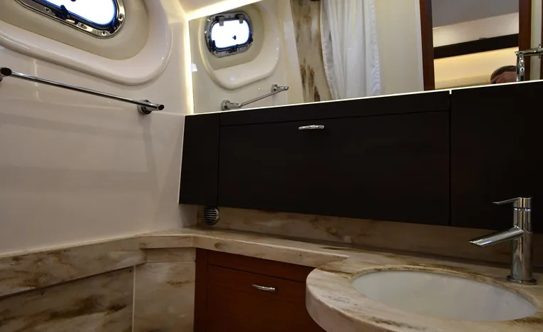 Features Triple Yamaha 425-hp Motors (Note Joy-Stick Piloting) with 700 original hours. Notable features include but are not limited to the following: Air-Conditioning & Heat (2-Units; Note Cockpit AC/Heat), Head (Vacuflush) w/Vanity/Sink/Shower, Windlass Anchor w/Polished Stainless-Steel Anchor, LewMar Bow-Thruster, Fischer Panda Generator (550-hrs.), Full Garmin NAV w/(2) Multi-Function Color / TouchScreen Display's w/Radar/GPS/Chartplotter, Autopilot, Premium Sound System w/Bluetooth, Starboard Dive Door, Cockpit Refrigerator, Cockpit Electric BBQ-Grill, Transom Live Well, and MUCH more!