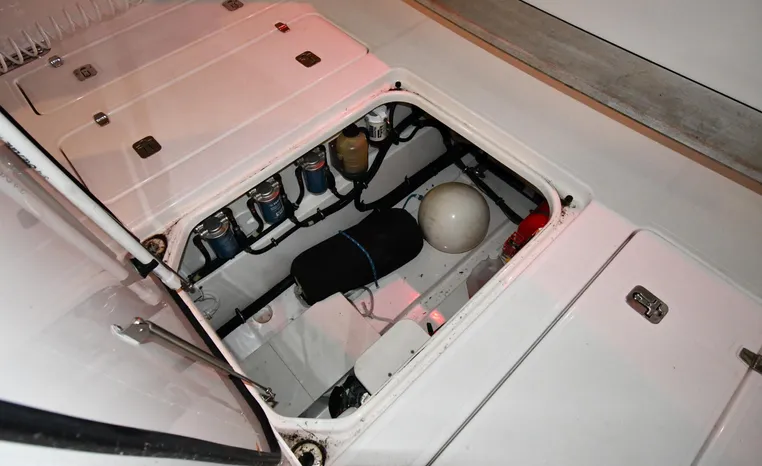 Features Triple Yamaha 425-hp Motors (Note Joy-Stick Piloting) with 700 original hours. Notable features include but are not limited to the following: Air-Conditioning & Heat (2-Units; Note Cockpit AC/Heat), Head (Vacuflush) w/Vanity/Sink/Shower, Windlass Anchor w/Polished Stainless-Steel Anchor, LewMar Bow-Thruster, Fischer Panda Generator (550-hrs.), Full Garmin NAV w/(2) Multi-Function Color / TouchScreen Display's w/Radar/GPS/Chartplotter, Autopilot, Premium Sound System w/Bluetooth, Starboard Dive Door, Cockpit Refrigerator, Cockpit Electric BBQ-Grill, Transom Live Well, and MUCH more!