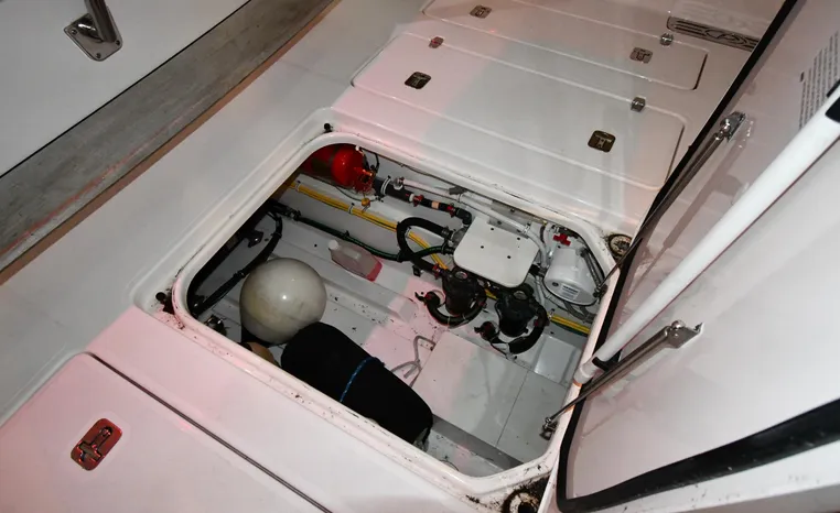 Features Triple Yamaha 425-hp Motors (Note Joy-Stick Piloting) with 700 original hours. Notable features include but are not limited to the following: Air-Conditioning & Heat (2-Units; Note Cockpit AC/Heat), Head (Vacuflush) w/Vanity/Sink/Shower, Windlass Anchor w/Polished Stainless-Steel Anchor, LewMar Bow-Thruster, Fischer Panda Generator (550-hrs.), Full Garmin NAV w/(2) Multi-Function Color / TouchScreen Display's w/Radar/GPS/Chartplotter, Autopilot, Premium Sound System w/Bluetooth, Starboard Dive Door, Cockpit Refrigerator, Cockpit Electric BBQ-Grill, Transom Live Well, and MUCH more!