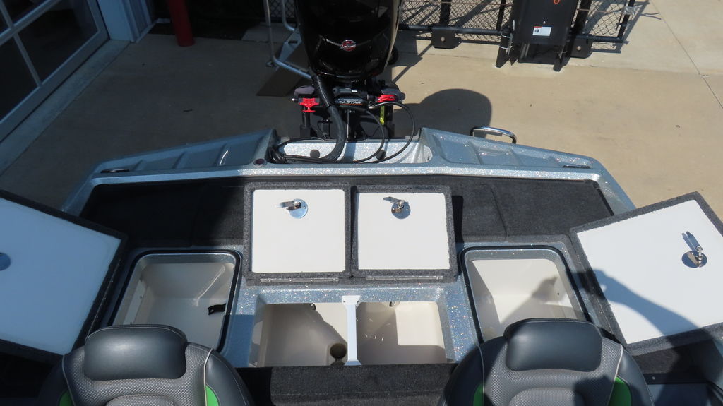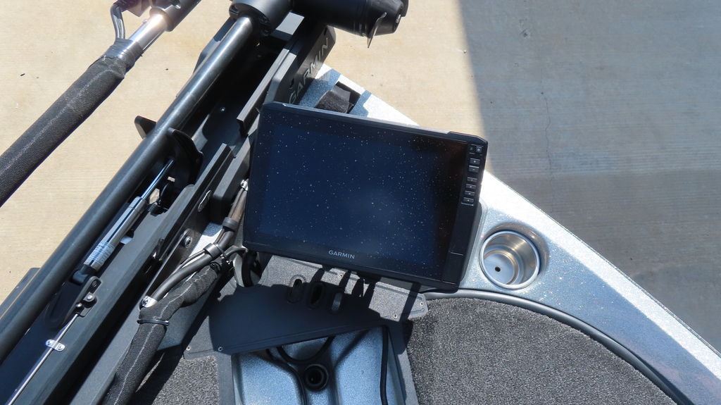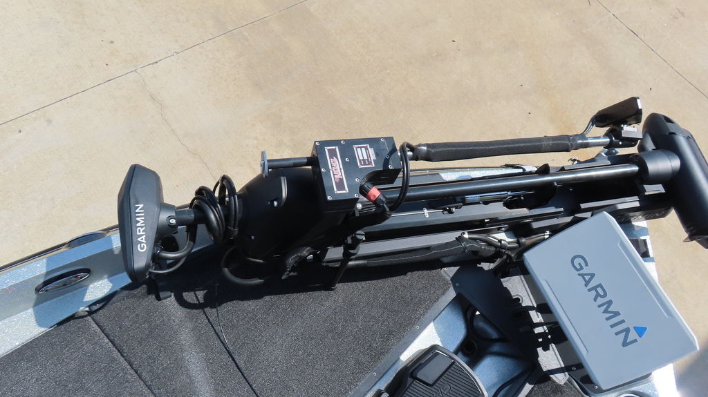 Z package, dual 10" touchscreen Garmin Echomap Ultra 126V, Garmin Panoptix with Livescope and side imaging, Ritehite Turret transducer mount, Garmin Force trolling motor, recirculating and aerated livewells, hydraulic jack plate, lockable storage with gas assist lids, Center rod locker, onboard charger, integrated LED navigation lights