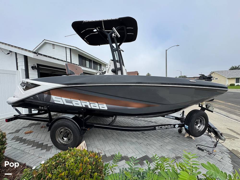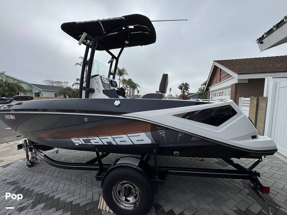 This Scarab 195 Open is turnkey and trailer-ready on a custom Fabrique DOS 195S Scarab trailer, making it easy to tow, launch, and store.