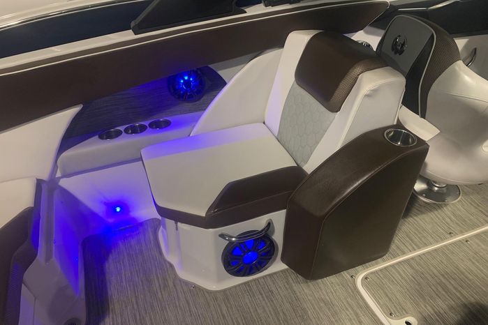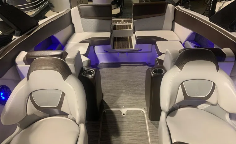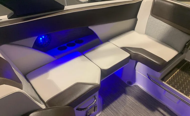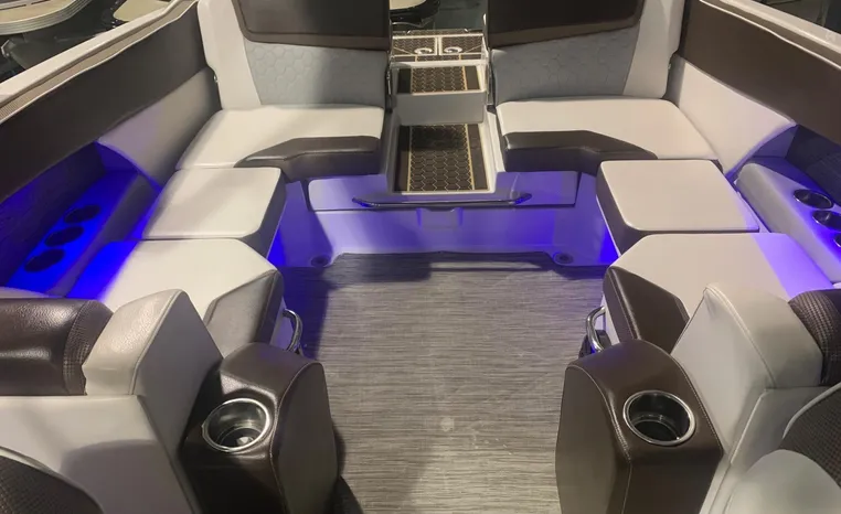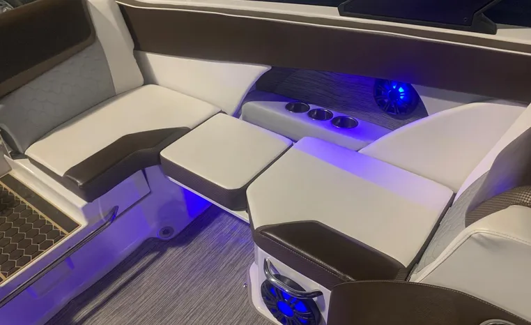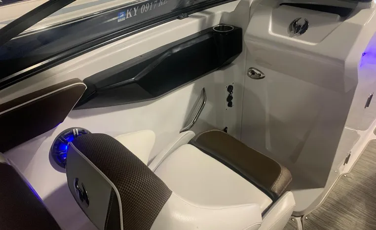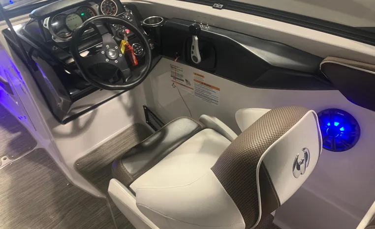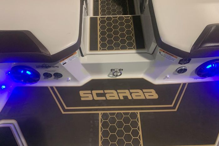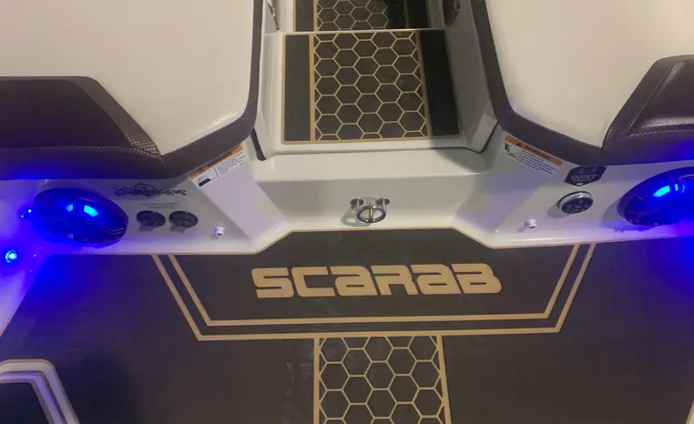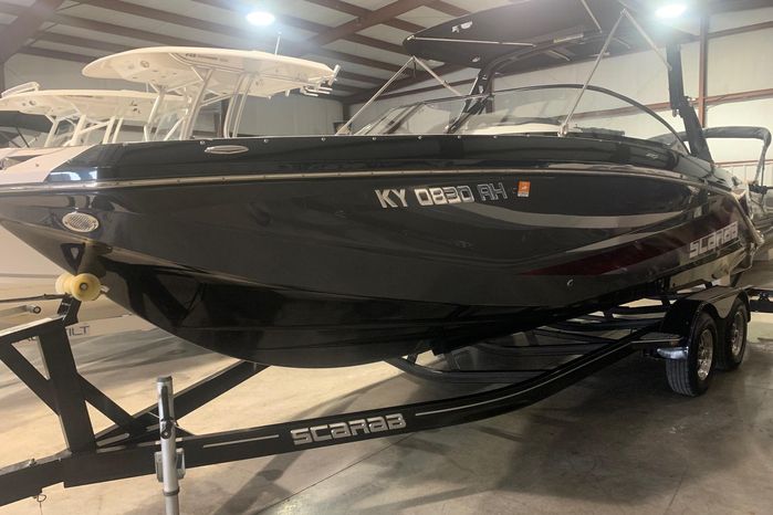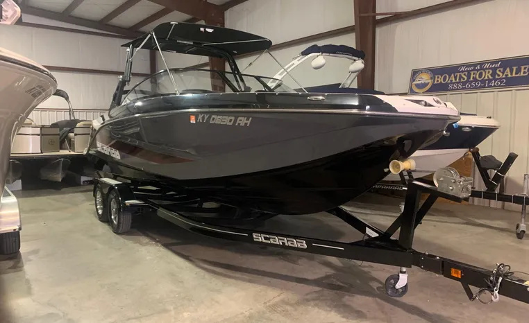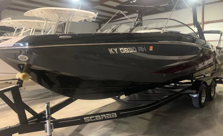 Introducing the 2019 Scarab 255 Wake ID, a stunning 25-foot ski and wakeboard boat designed for exhilarating water adventures. This used model features a robust fiberglass hull, ensuring durability and performance on the water. Powered by two 150 hp ROTEX 4-TECH inboard engines with jet drive, it delivers an impressive cruising speed of 38 knots and a maximum hull speed of 55 knots, making it perfect for thrilling rides and smooth gliding. With a seating capacity for 13, this boat is ideal for gatherings with family and friends, providing ample space for everyone to enjoy. The well-thought-out design includes two heads for convenience, enhancing the overall experience on board. Whether you're carving through waves or relaxing at anchor, the Scarab 255 Wake ID combines style, power, and comfort, making it a fantastic choice for water enthusiasts.