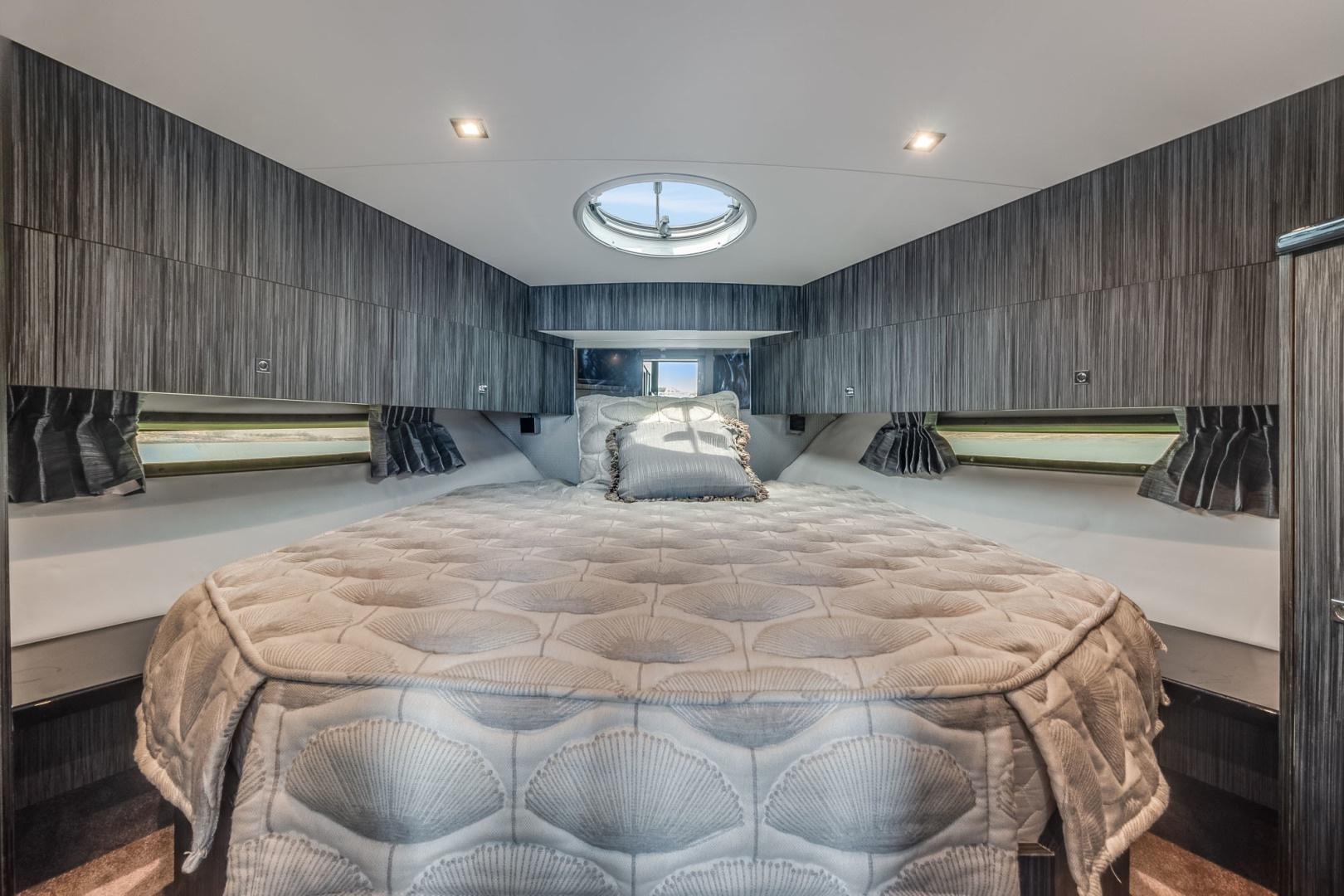 Master cabin with luxurious island berth and overhead hatch.