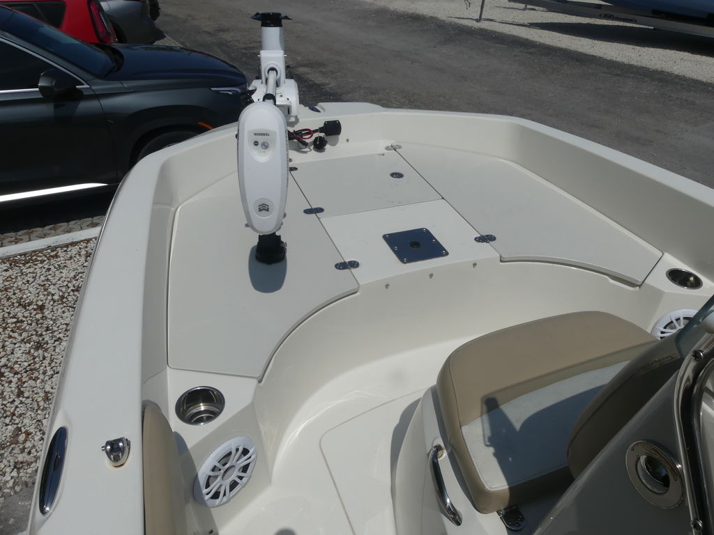 The center console layout provides excellent functionality and 360-degree access around the deck, making it ideal for fishing and recreational use. Key features include multiple rod holders, a spacious casting deck at the bow, and dedicated storage compartments for tackle and gear. This setup allows anglers to stay organized and ready while maximizing space to move freely when fighting fish. The open design also ensures that passengers have plenty of room to enjoy the ride without feeling crowded.