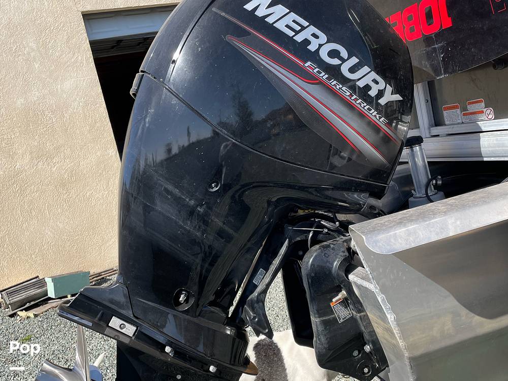 She's powered with a Mercury 150 HP motor and she's engineered to handle up to 200 HP. This triple pontoon style delivers a smooth ride with safety built in.