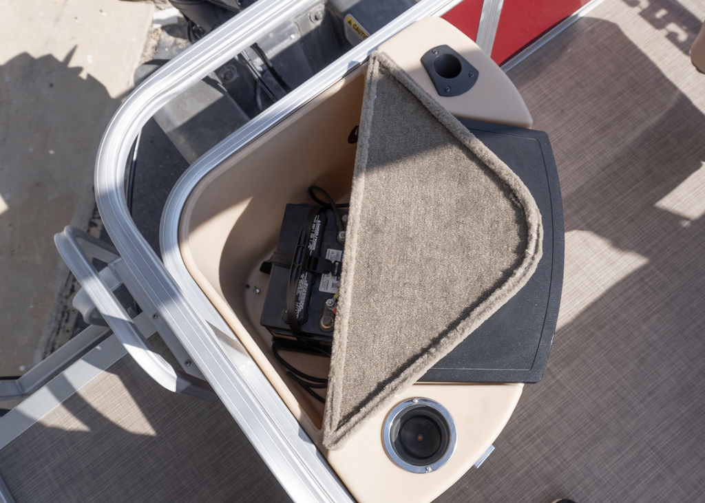 - Aft port 16-gal. (60.57 L) aerated livewell w/removable bait bucket & shutoff valve