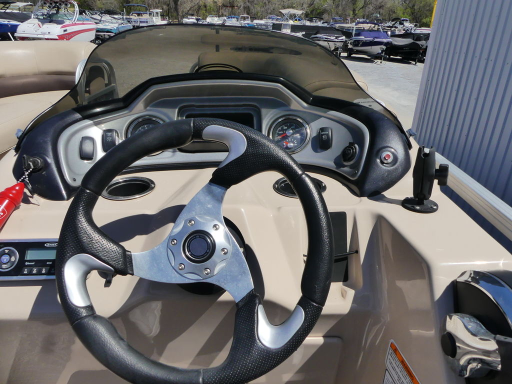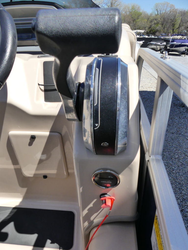 - Console w/cooler storage below, NEW helm chair & stereo w/Bluetooth® & USB input
