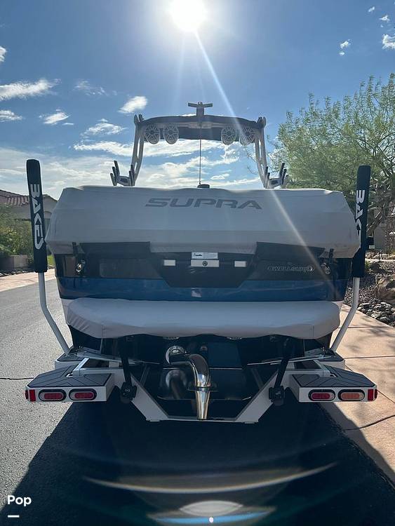 This Supra SE550 is powered by an Indmar Raptor 575 inboard motor and is equipped with the Swell Surf system, tons of ballast and she throws a great wake!