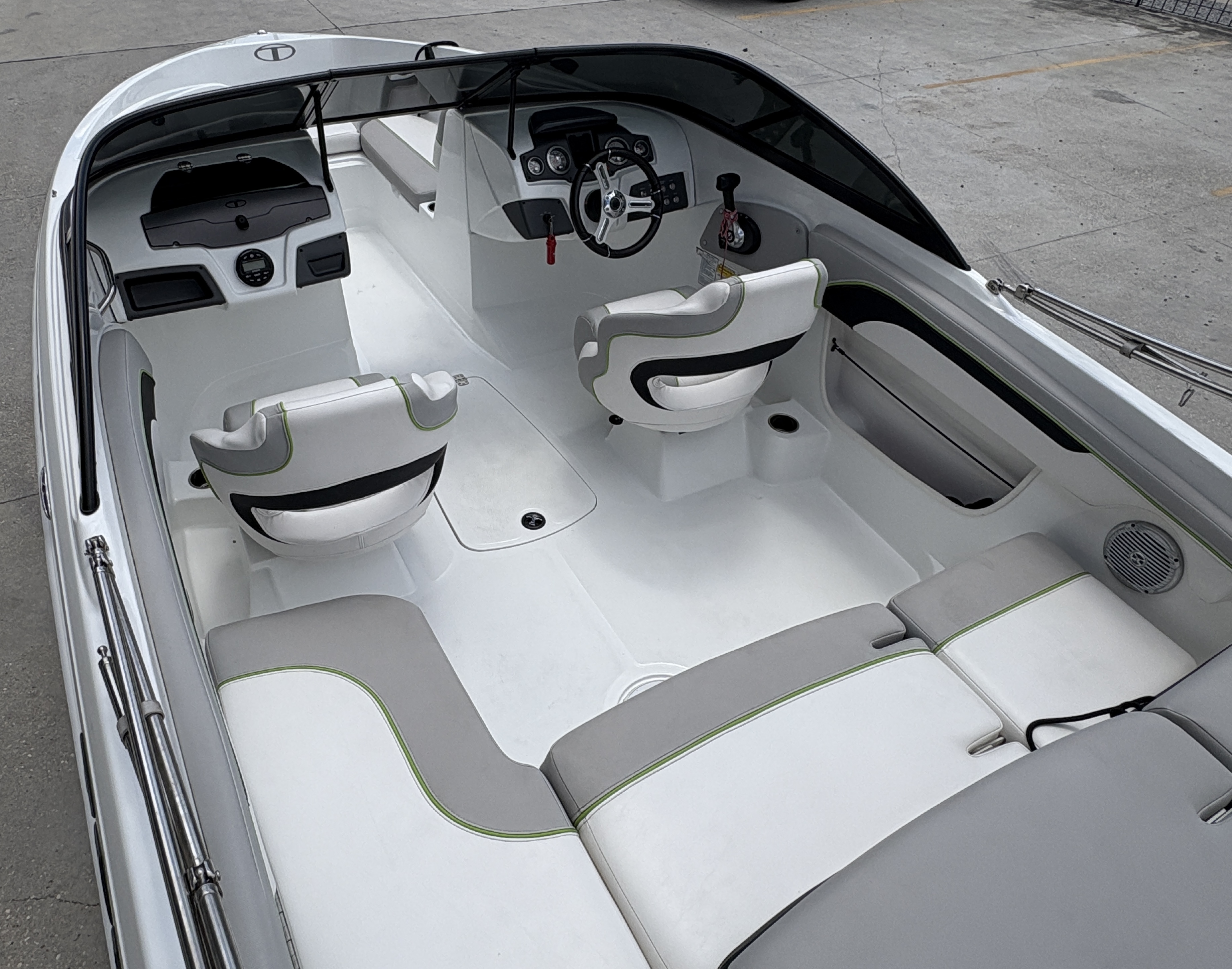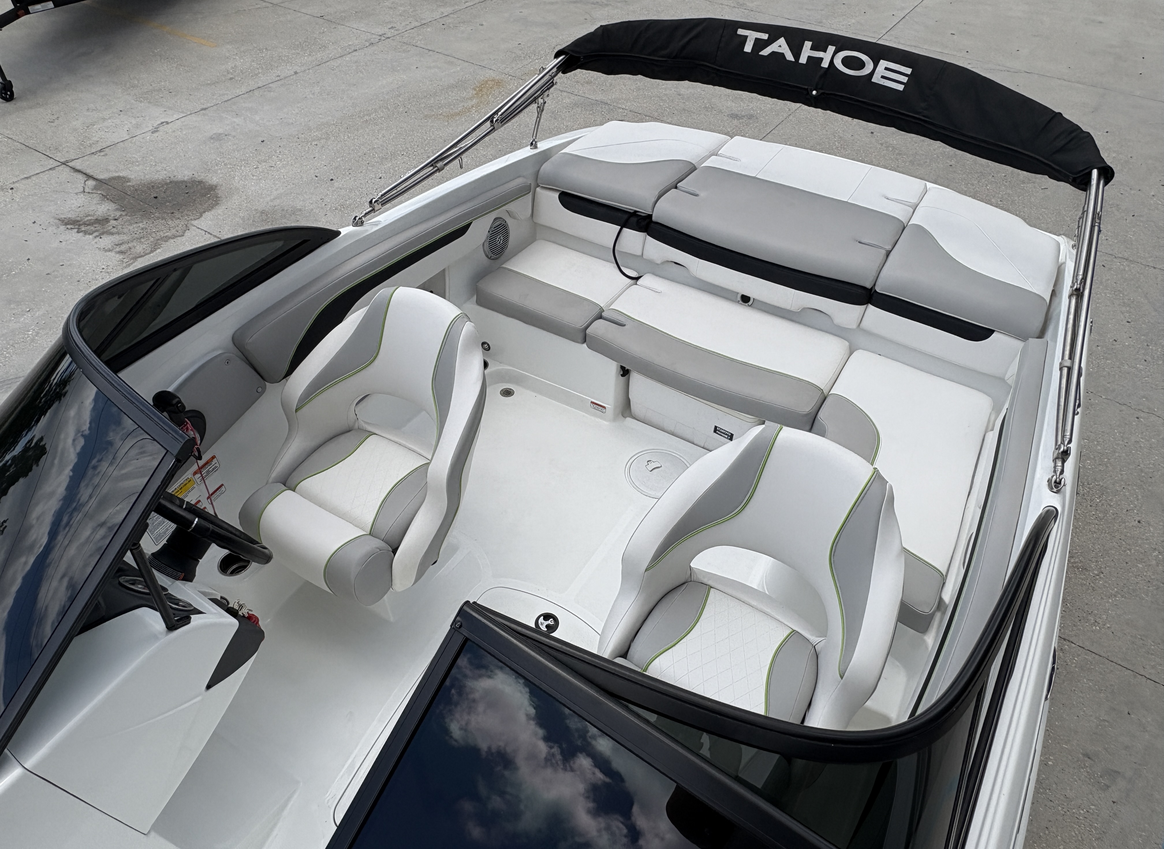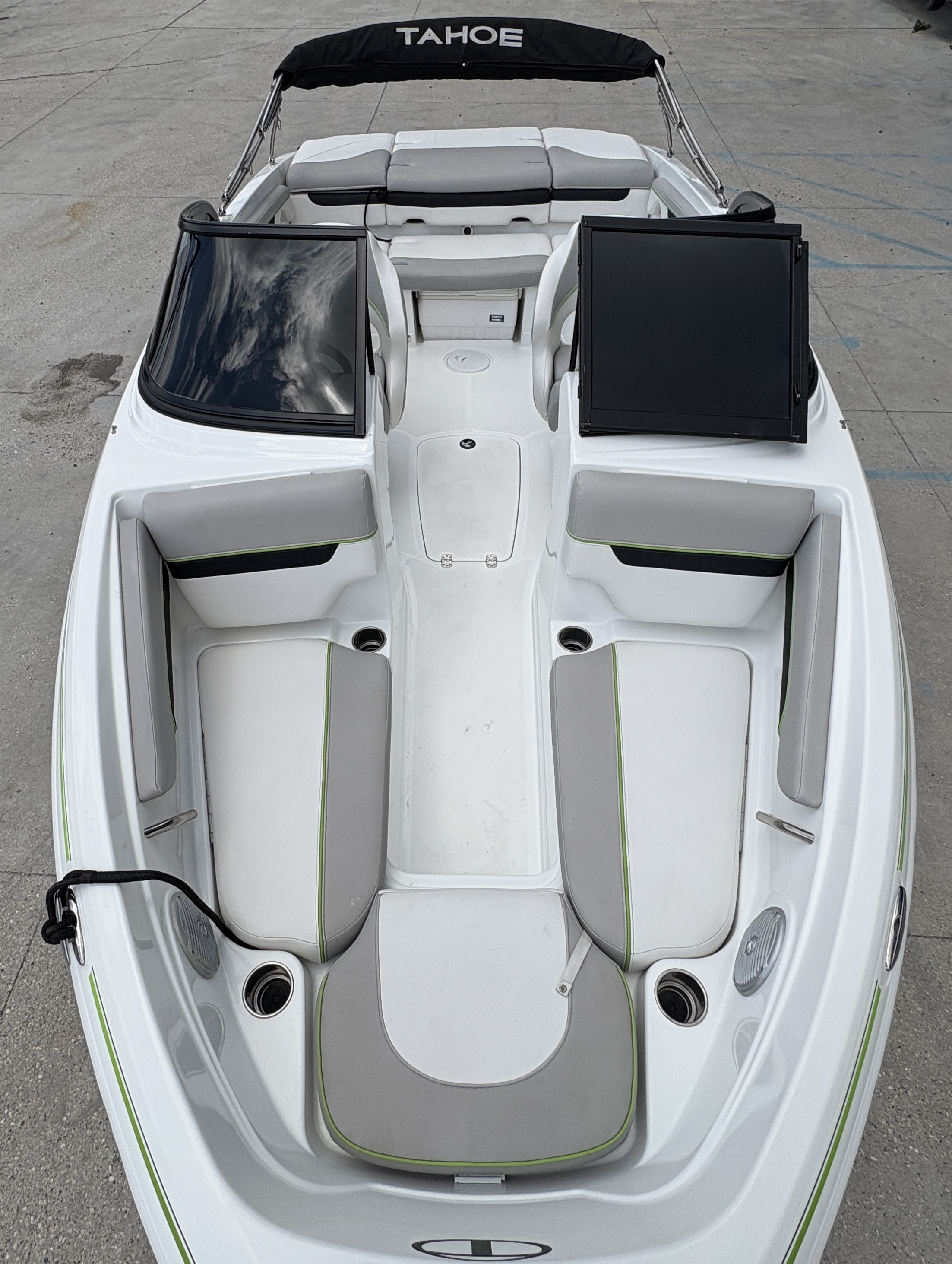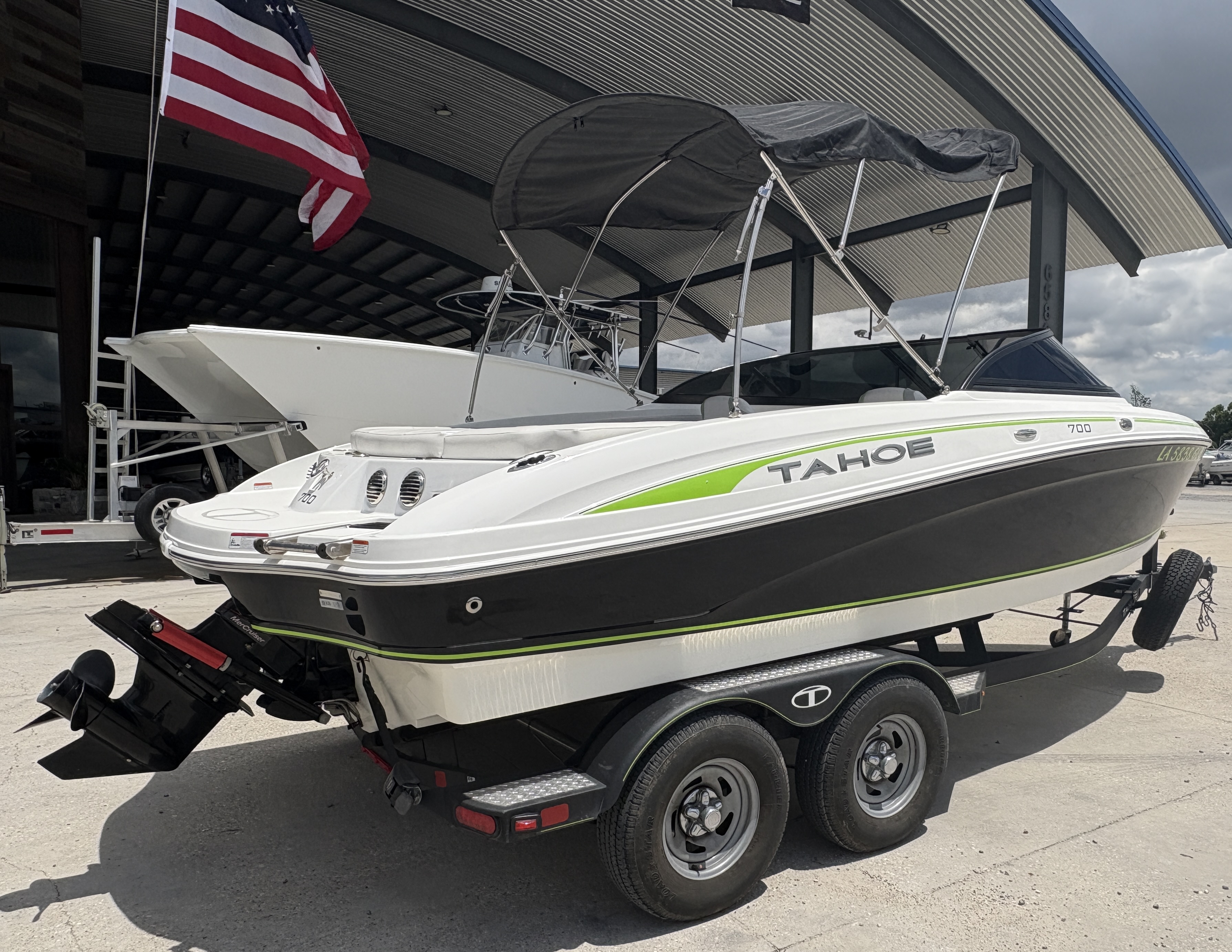 The 2019 Tahoe 700 is a sleek and sporty fiberglass bowrider designed for fun-filled days on the water. With its bold styling, powerful performance, and premium features, this boat offers a smooth, thrilling ride perfect for water sports, cruising, or relaxing with friends and family. The 700 features plush marine-grade upholstery, spacious seating with bow and aft lounge areas, and plenty of storage. It also includes a built-in swim platform with a ladder, a Bimini top for shade, and a Bluetooth-compatible sound system to keep the good vibes going all day long.