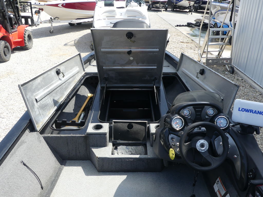 With huge decks, loads of storage, and an outboard capacity of up to 115 horses, the TRACKER® Pro Team™ 190 TX is a step up to a faster, roomier aluminum fishing boat. It’s revitalized with a new tournament-style deck layout—port and starboard 7’ rod boxes with tip organizers, a giant center bow tackle box and bag organizer, a cooler in the step up to the bow deck flanked by 2 drink holders.