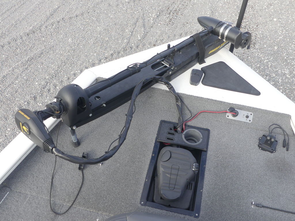 - Trolling motor pedal recess w/tool holder & drink holder