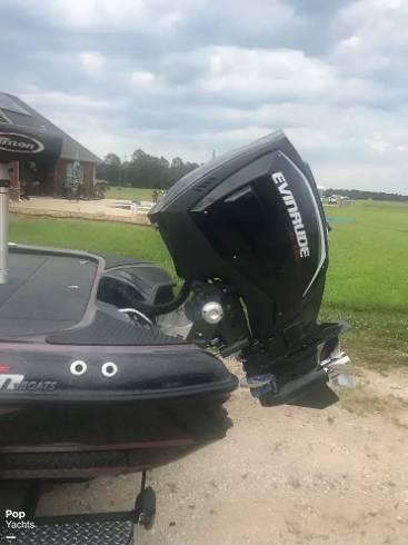 Powered by an Evinrude G2 250 horsepower engine, this Triton can reach speeds of 75 to 80 MPH. The engine is mounted on an adjustable jack plate