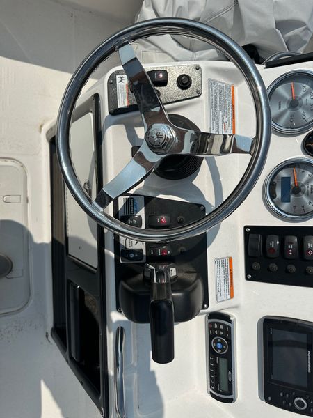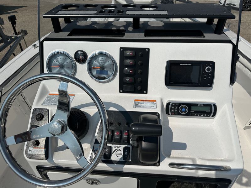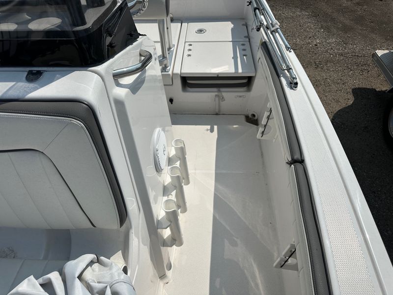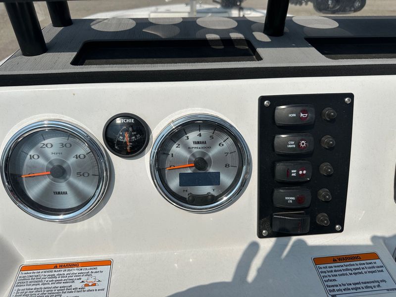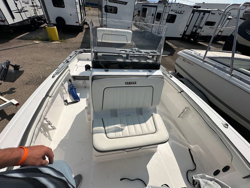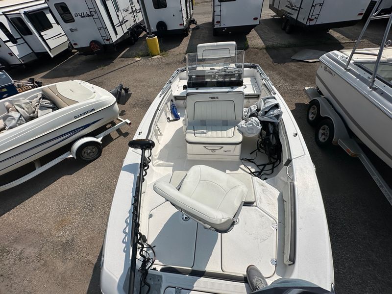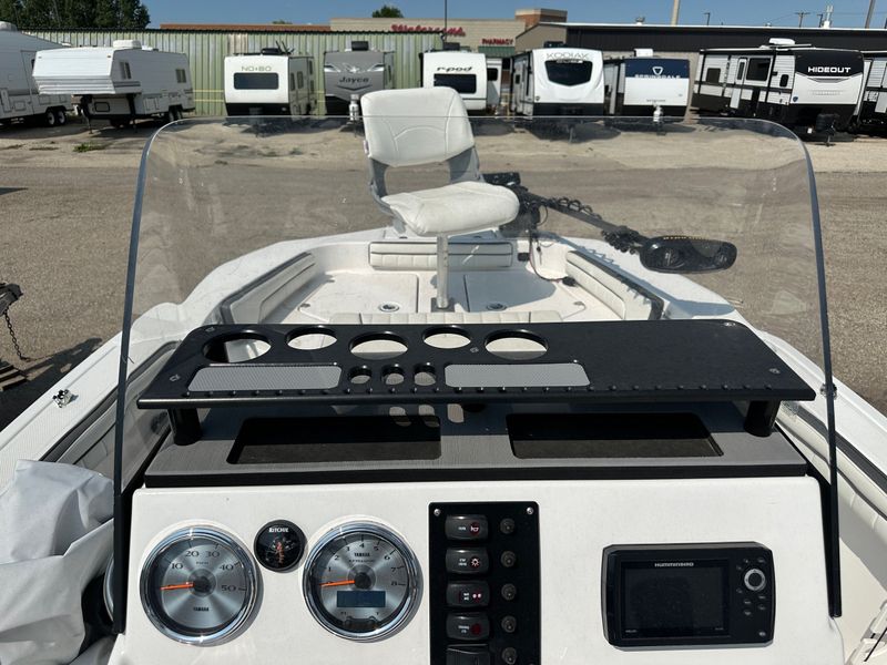 This used 2019 Yamaha 190 FSH Deluxe is a center console jet boat built for fishing and family fun in Sheridan. The open deck lets you move with ease, cast from all sides, and relax between bites. Yamaha jet power gives quick takeoff, tight handling, and a shallow draft with no exposed prop for added confidence on local water. The Deluxe trim brings cushioned seating, smart storage, and a clean helm, and it is priced at $28,995.