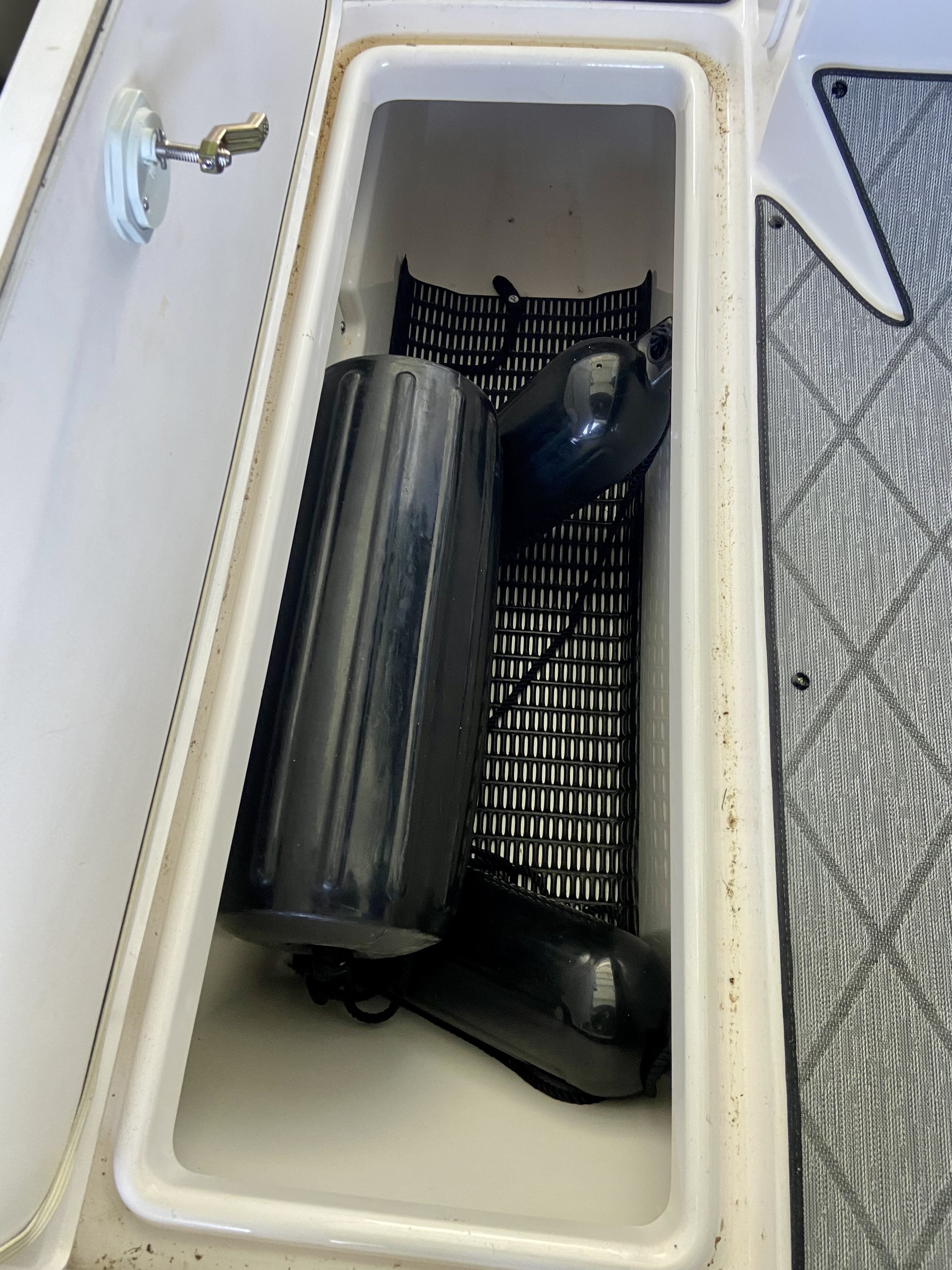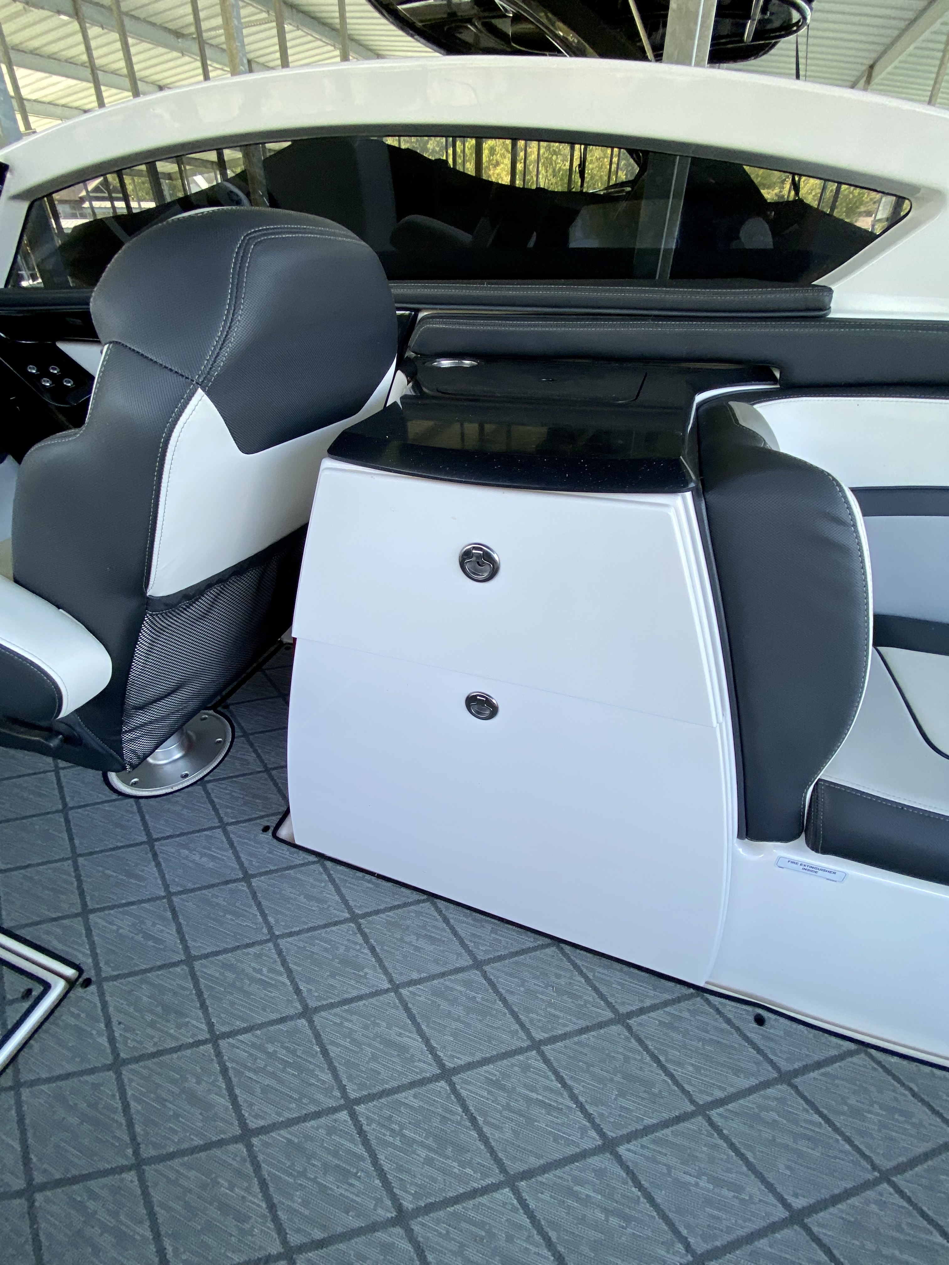 Industry-first features can be found everywhere on the new Yamaha 275 series boats, including a new patent pending innovation on the stern. At anchor, two removable seats can be attached to the stern. These seats sit just below the water’s surface, providing comfortable in-water seating facing the transom of the boat. With the ladder in between both seats, egress back on the boat is a breeze. When ready to go underway, merely bring the seats back on board.