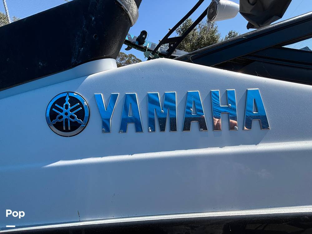 The interior layout includes wrap-around seating, a bow seating area, and Yamaha's signature stern lounge that sits just above the water for relaxing or preparing for watersports.