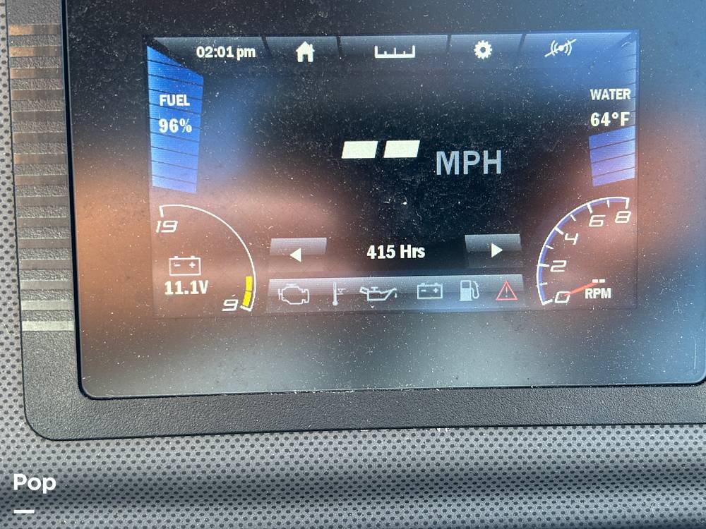 This single-engine jet-drive bowrider is built with a fiberglass modified-V hull. Its jet propulsion system eliminates an exposed propeller, ideal for shallow water operation. The boat features a forward-swept wake tower, large swim platform, and a comfortable cockpit layout designed for watersports such as wakeboarding, tubing, and skiing.